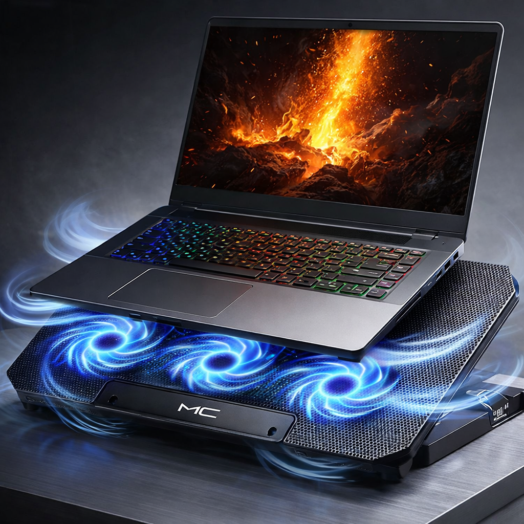 Der Q100 17-Zoll-Gaming-Laptop-Kühlerlüfter wurde speziell entwickelt, um leistungsstarke Laptops auch bei intensiven Gaming-Sessions oder anspruchsvollen Anwendungen zuverlässig kühl zu halten. Mit seinem starken Luftstrom reduziert er effektiv die Hitzeentwicklung und sorgt dafür, dass die Hardware konstant auf Höchstleistung arbeiten kann. Das ergonomische und stabile Design garantiert einen sicheren Stand für Laptops bis zu 17 Zoll und ermöglicht gleichzeitig eine komfortable Nutzung über längere Zeiträume.